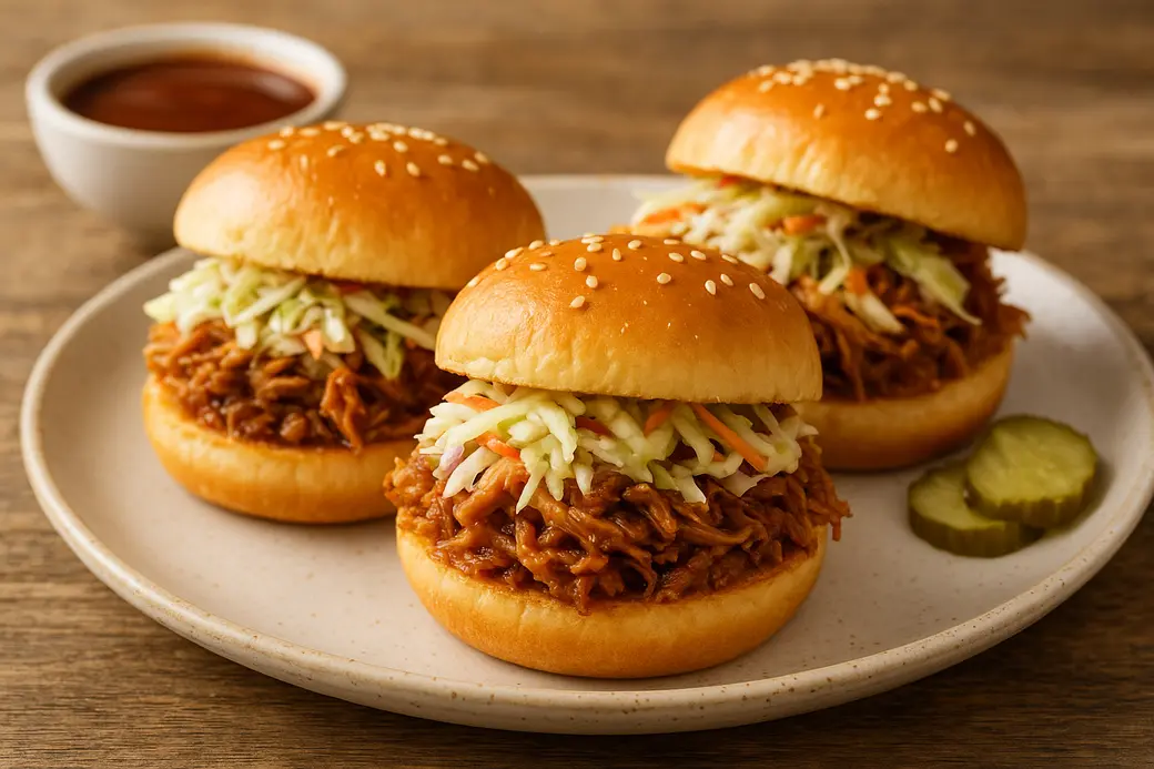 - Assemble Sliders: Pile pulled pork onto buns, top with slaw, and drizzle with extra sauce.